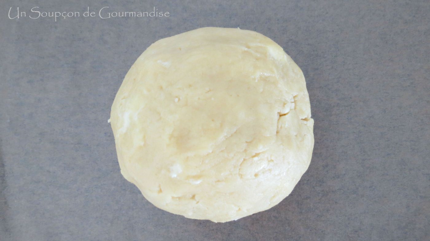 Malaxer avec les mains jusqu’à ce que la pâte soit amalgamée et forme une boule (au bout de 5 minutes environ). Mettre un torchon sur le saladier et placer le tout au réfrigérateur pendant 30 minutes.