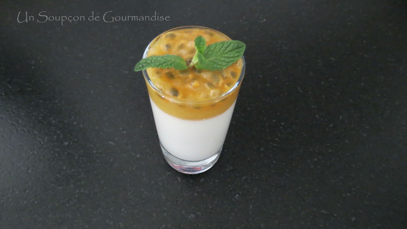 Verser ce coulis sur les panna cotta, y ajouter 1 ou 2 cuillères à café de fruits de la passion et quelques feuilles de menthe pour décorer.