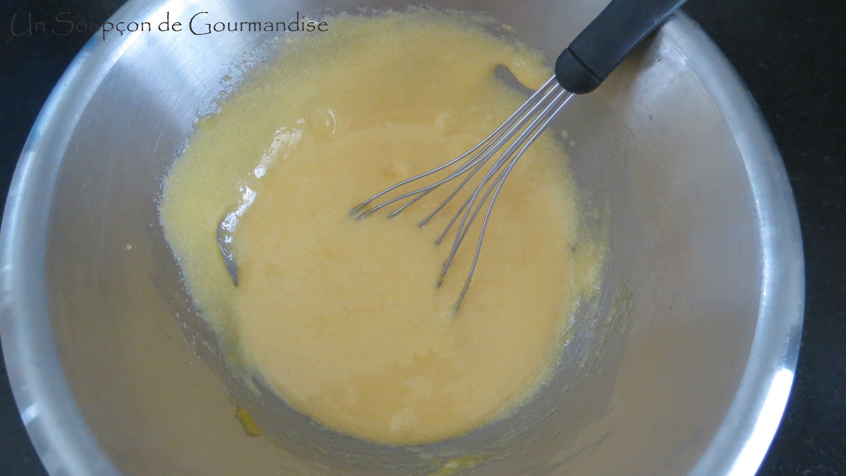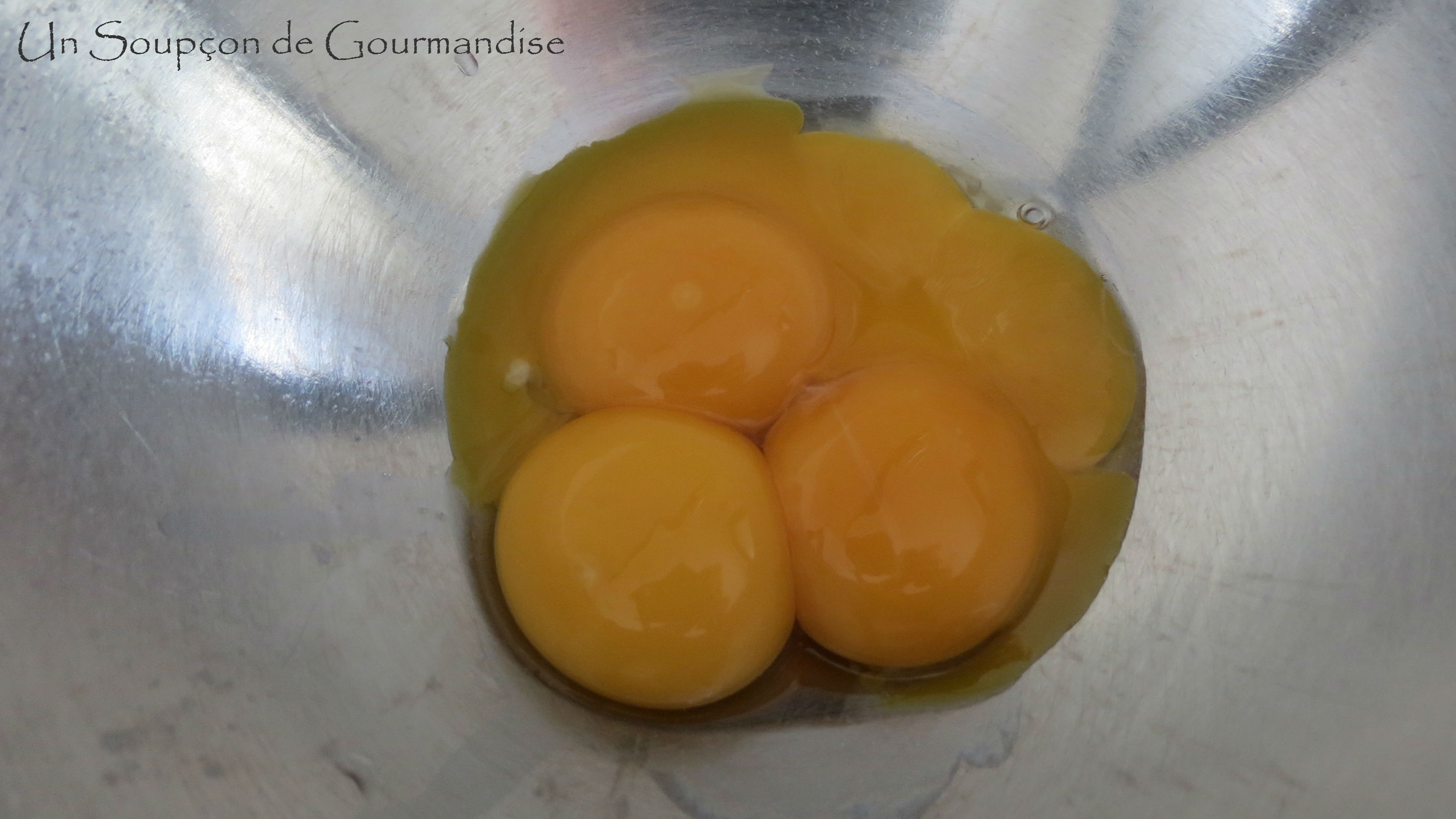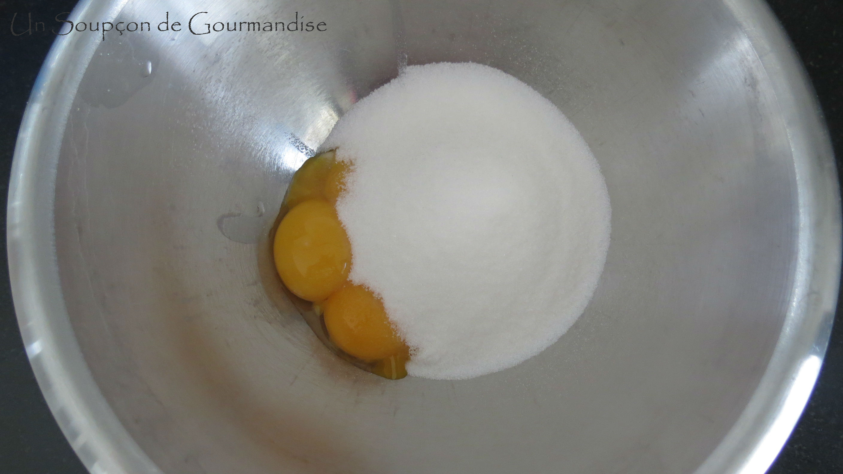 Blanchir 4 jaunes d’oeuf avec 160g de sucre.