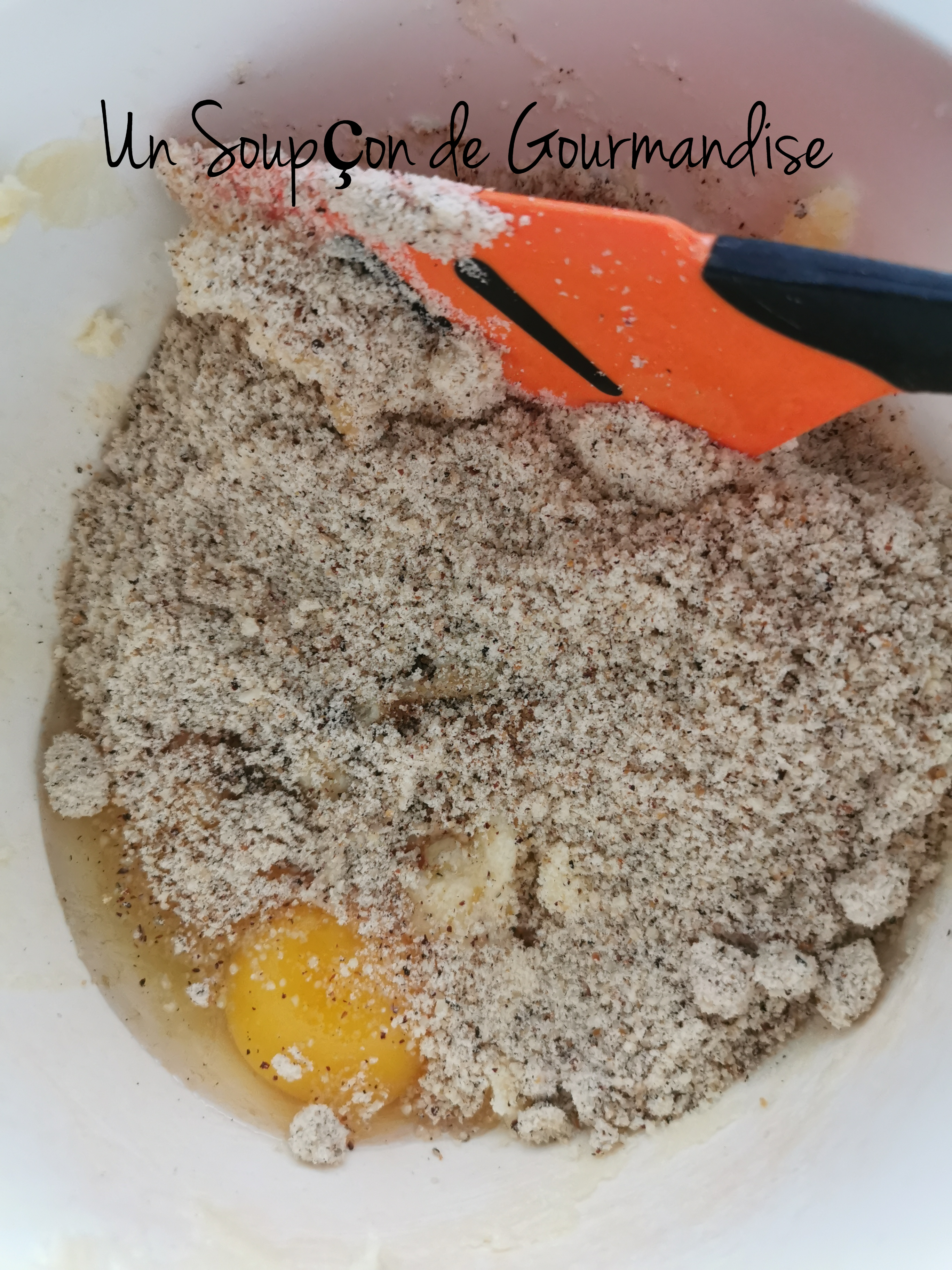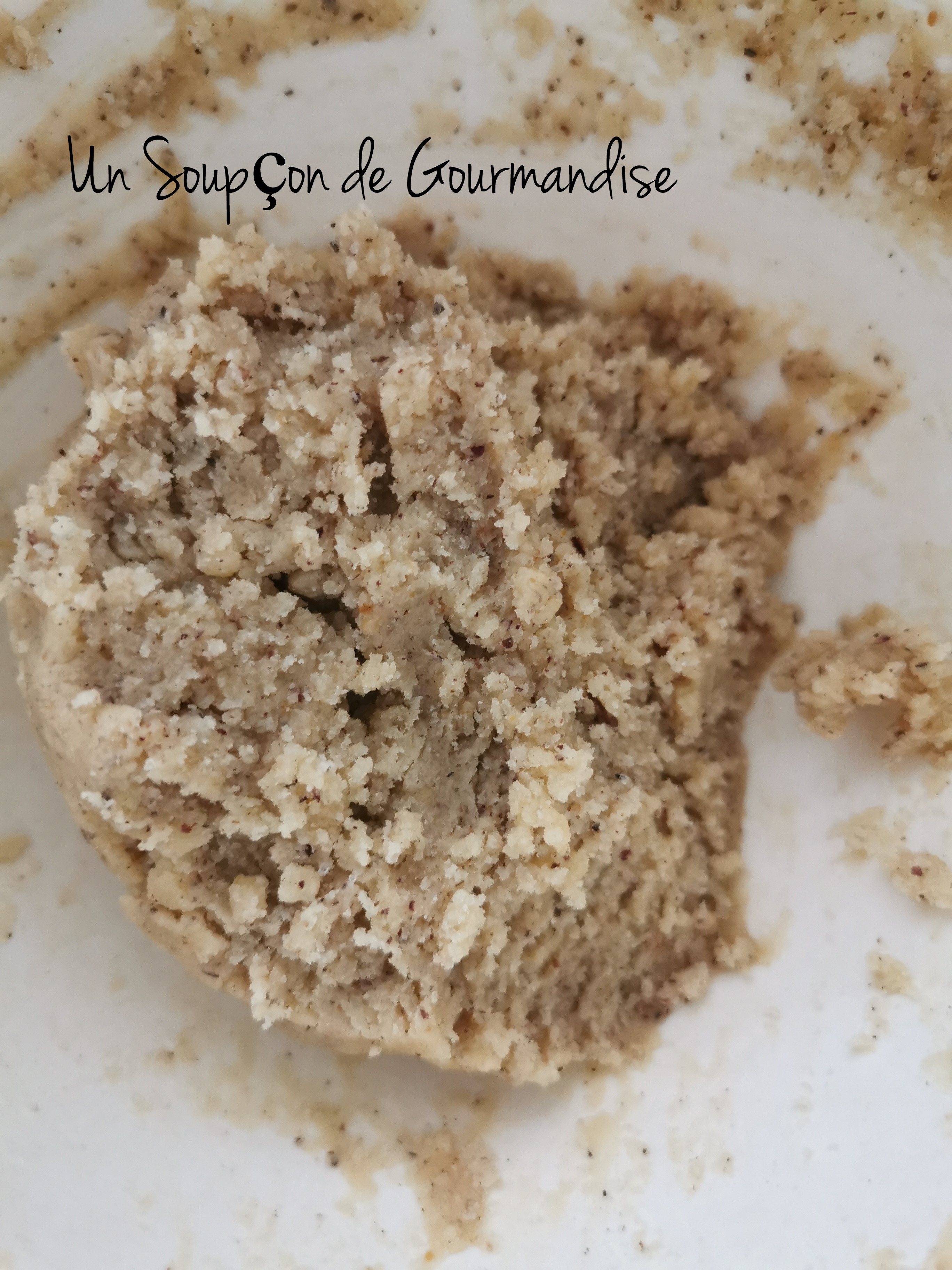Ajouter 1 oeuf entier, 2 sachets de sucre vanillé et 100g de noisettes en poudre et mélanger à l’aide d’un fouet plat.