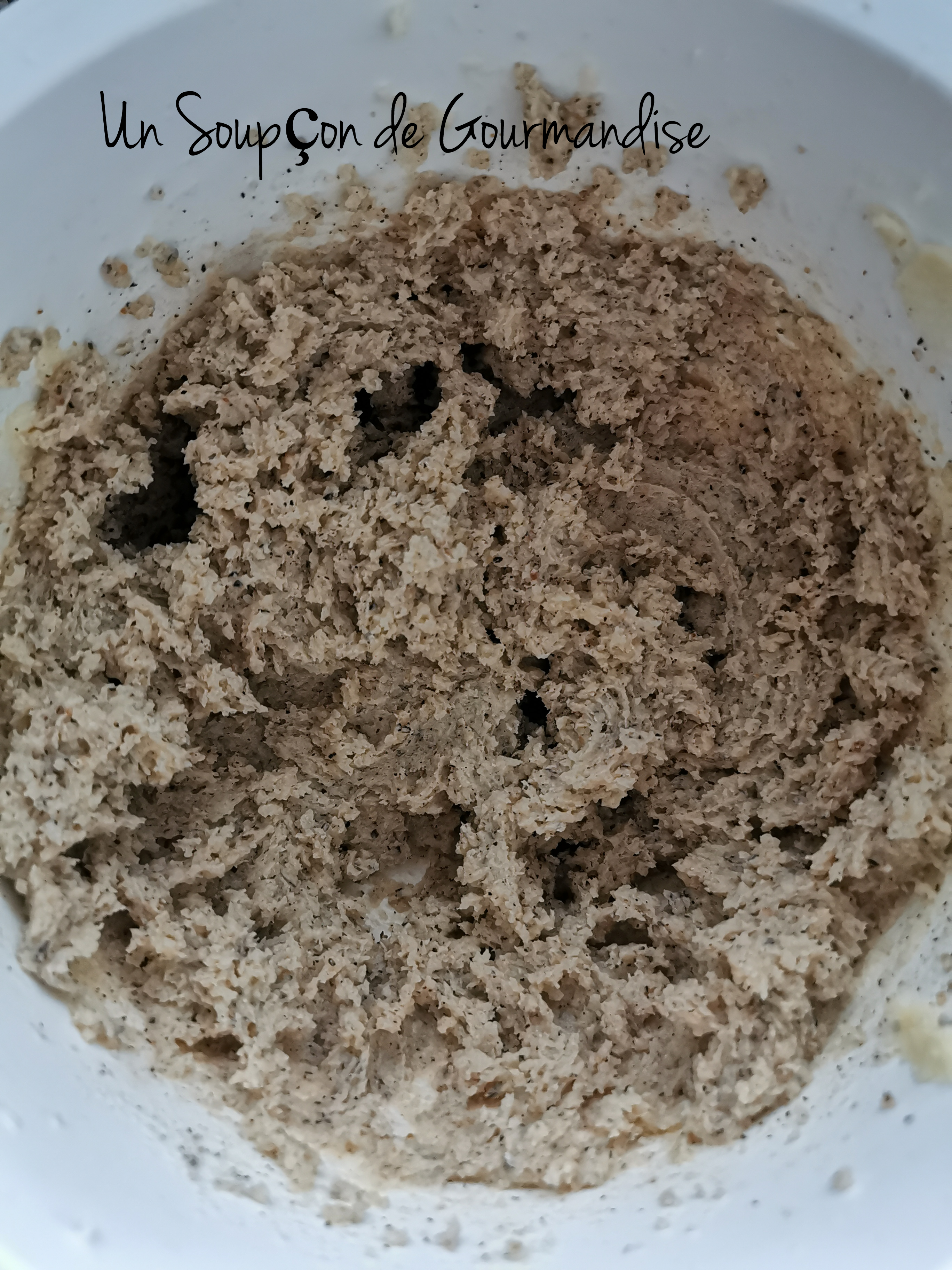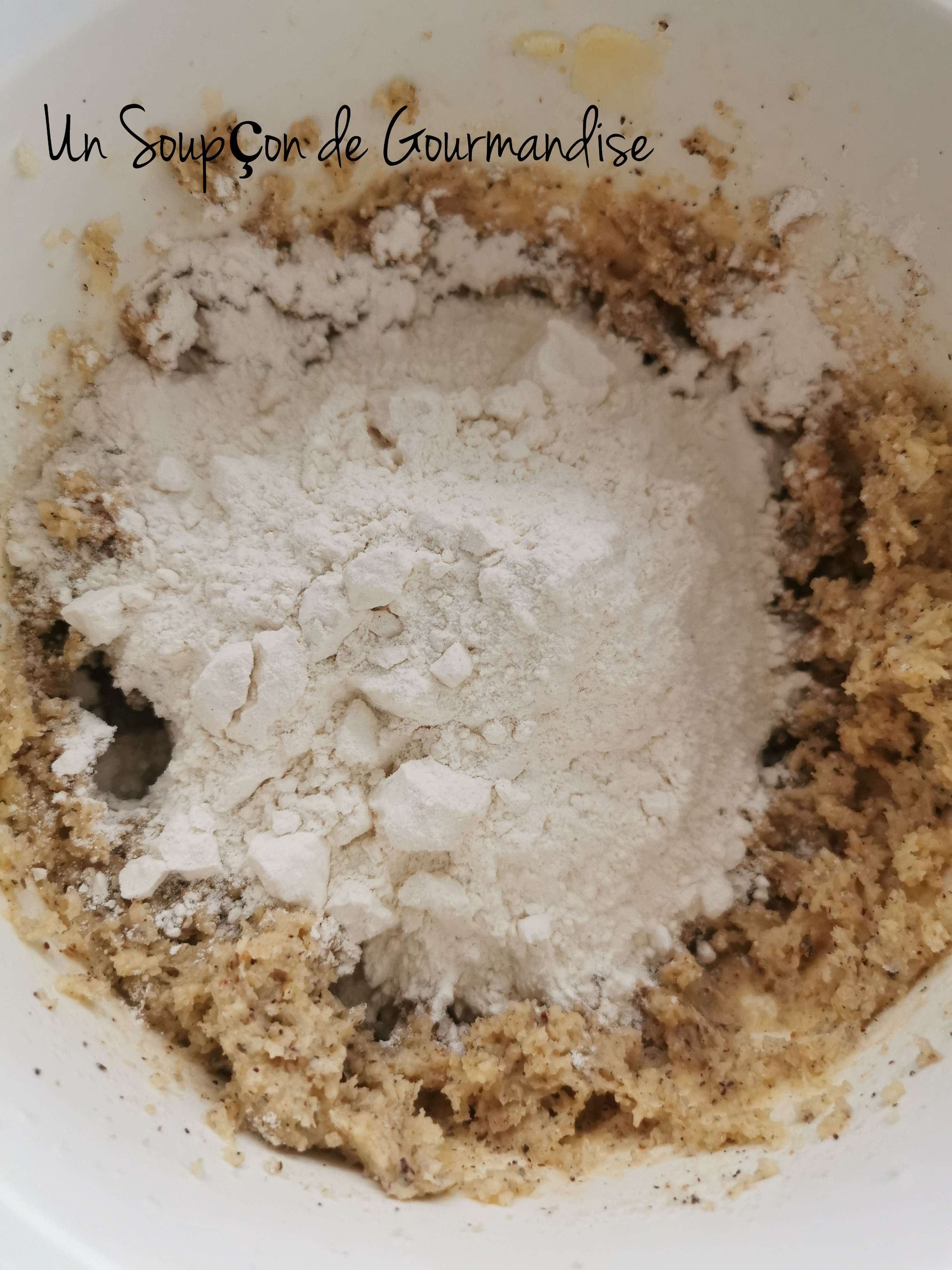 Incorporer progressivement 150g de farine T55 toujours en mélangeant à l’aide d’un fouet plat jusqu’à pouvoir former une boule avec la pâte.