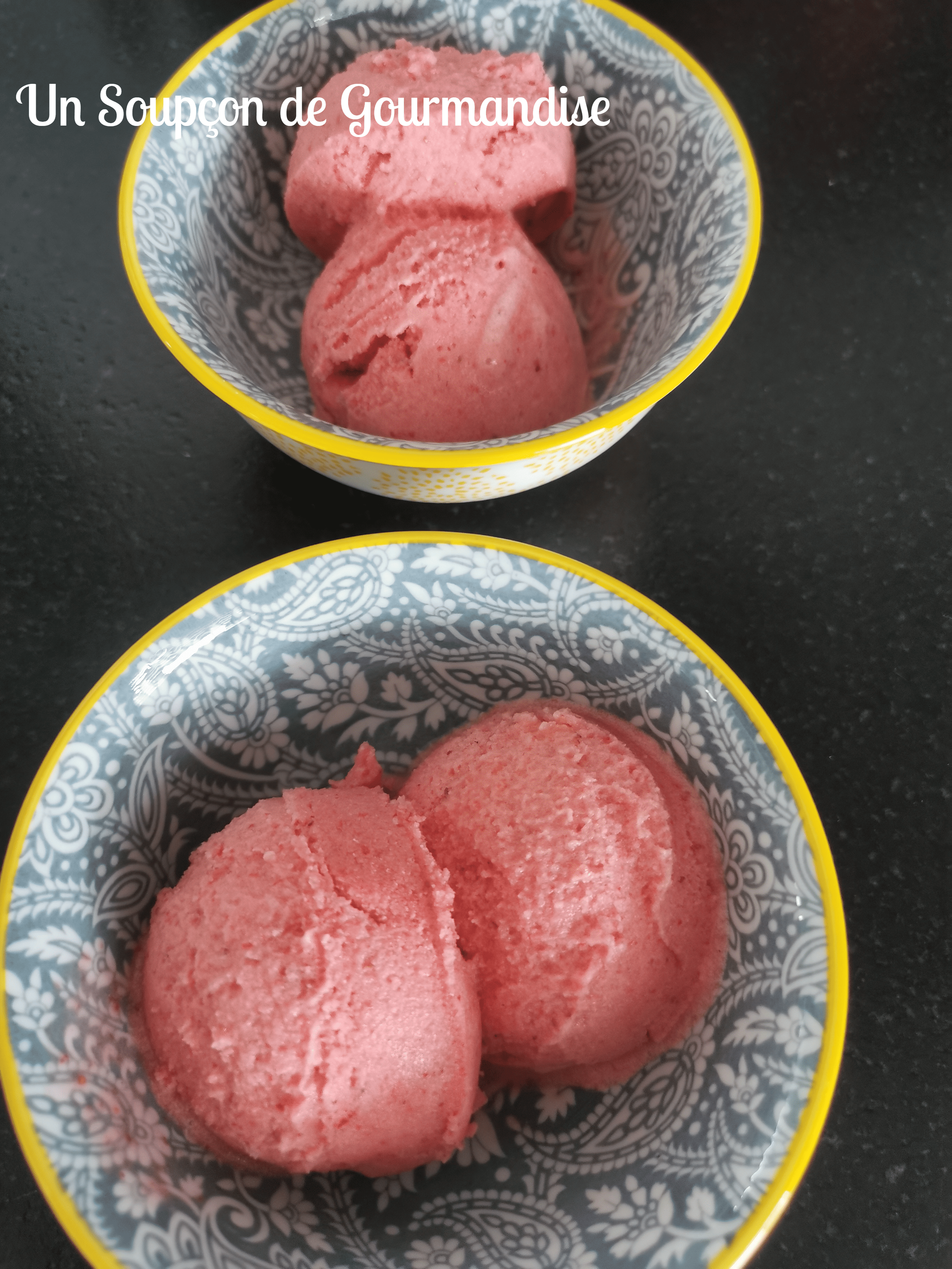 La très belle saison des fraises touche à sa fin et celles qui restent ont été abîmées par la météo capricieuse. C’est donc l’occasion de les utiliser sous une forme qui privilégie leurs qualités gustatives plutôt que l’esthétique, en crème glacée : zéro colorant, zéro arôme artificiel, zéro ingrédient bizarre, sucre justement dosé, et le goût naturel et puissant du fruit, tellement bon !