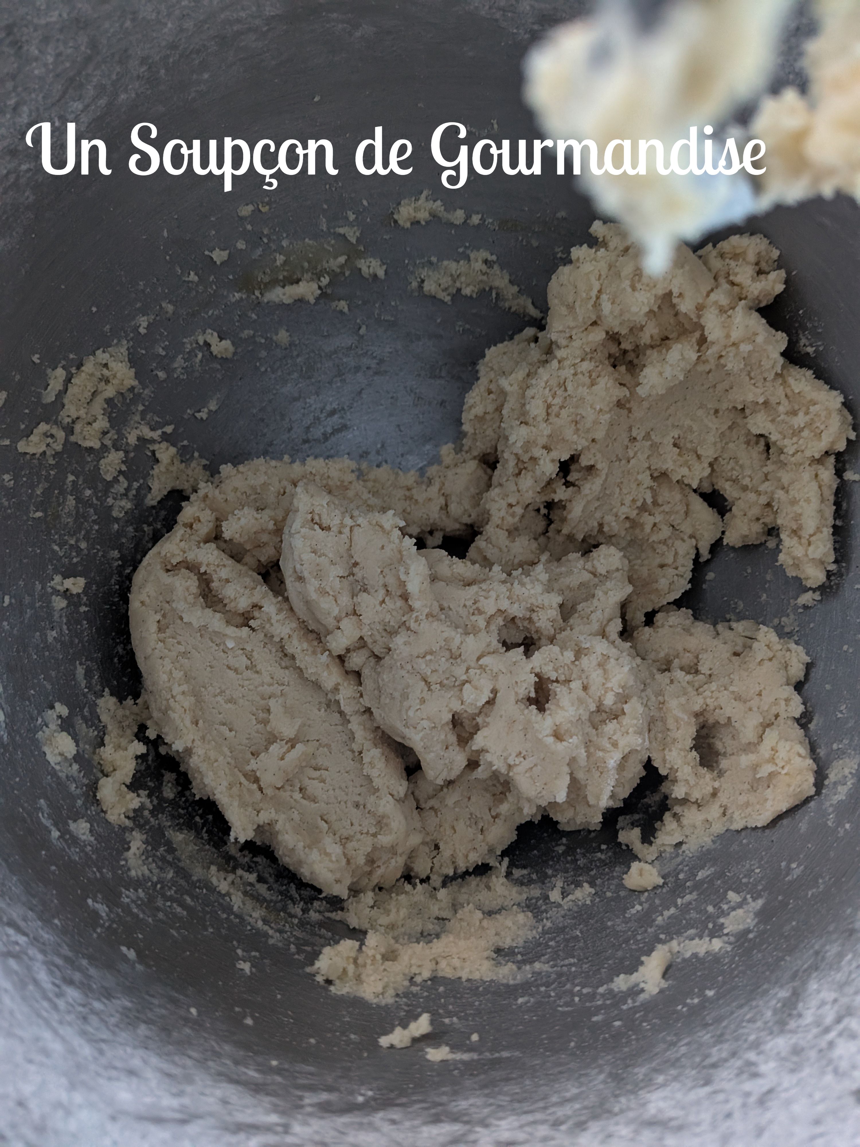 Ajouter 100g de beurre mou coupé en petits morceaux et mélanger avec la feuille du robot afin de sabler la préparation.